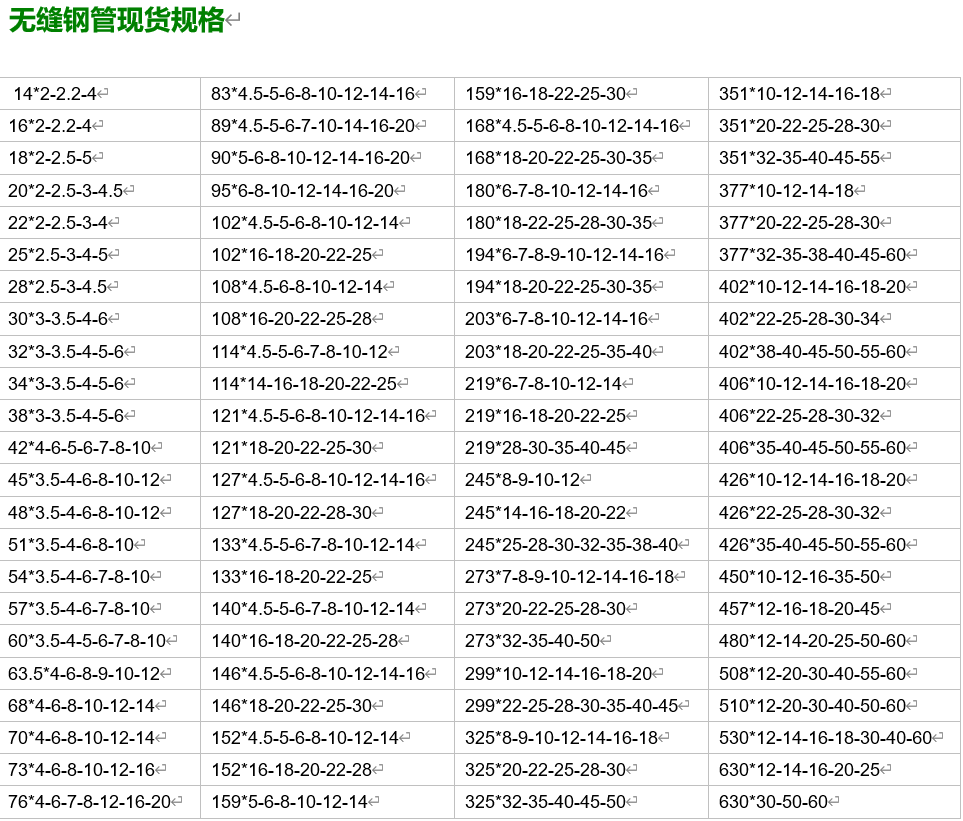 無縫鋼管的規格及壁厚